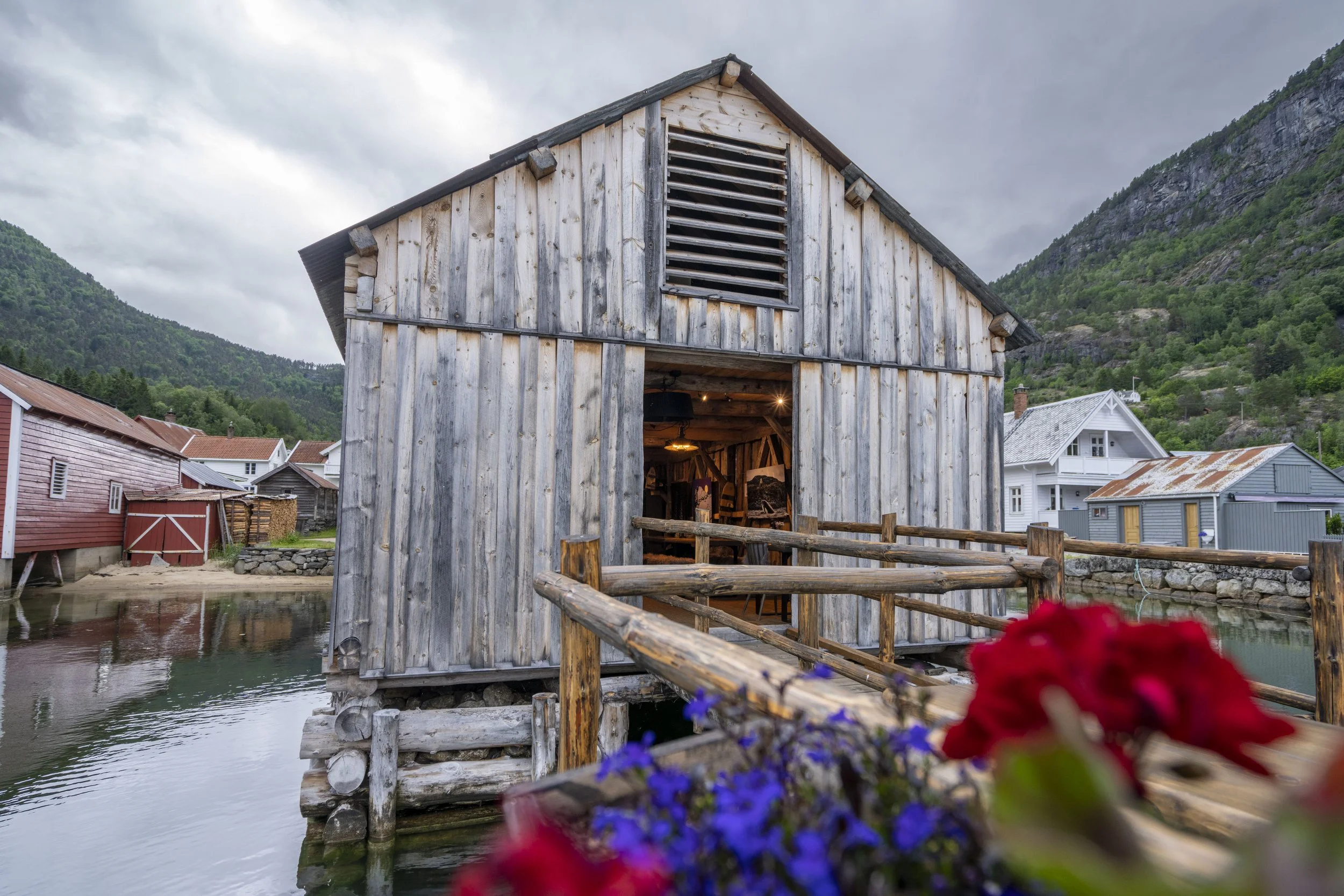 Kvitabui is a small, personal dining experience set in a traditional rustic boathouse right by the fjord in Solvorn. Our concept is built around local ingredients from the fjord and surrounding mountains, serving simple but carefully crafted dishes—often centred around venison and seafood. Much of the produce is harvested locally by the owner, who is both a fisherman and a hunter. In the same building, we also have a small photography gallery.